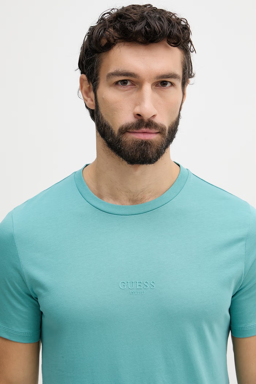 Tričko z kolekce Guess. Model vyroben z pleteniny s aplikací. Model vyrobený z na dotek mimořádně příjemného materiálu.
