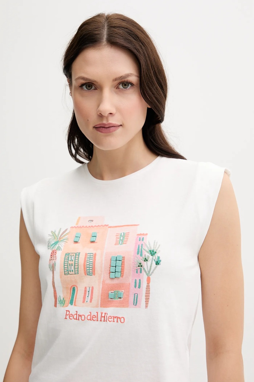 Tričko z kolekce Pedro del Hierro. Model vyroben z tenké, elastické tkaniny. Model ze vzdušného, bavlněného materiálu.