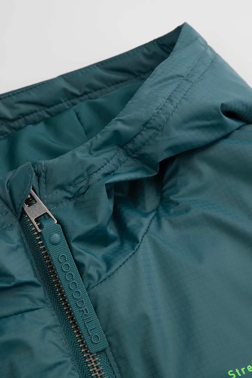 Zelená přechodová bunda Coccodrillo je funkční kousek šatníku, který zajišťuje pohodlí a ochranu před nevyzpytatelným počasím v jarních a podzimních dnech. Tento model, navržený pro aktivní dívky, spojuje praktická řešení s módním, jednoduchým designem. Zhotovení z recyklovaných materiálů a základní voděodolnost z ní činí promyšlenou volbu pro malé objevitelky.