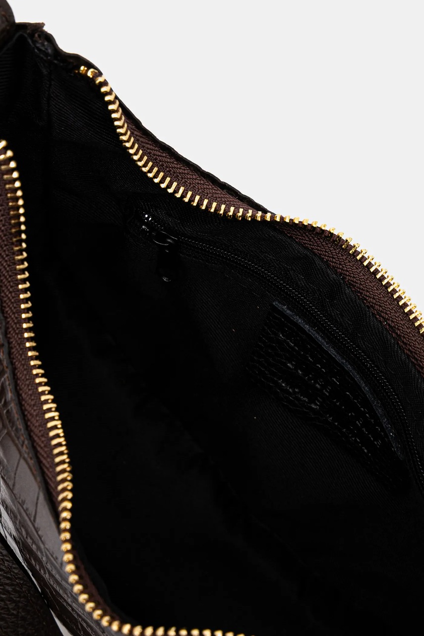 Kabelka Answear.LAB je elegantní model přes rameno, který je vyroben z kvalitní přírodní kůže se zajímavým efektem krokodýlí kůže. Její vyztužená konstrukce pomáhá udržet tvar a díky kompaktní velikosti je ideální pro uložení nejdůležitějších drobností. Tento model skvěle doplní jak ležérní, tak i sofistikovanější outfity a dodá jim nádech luxusu a elegance.