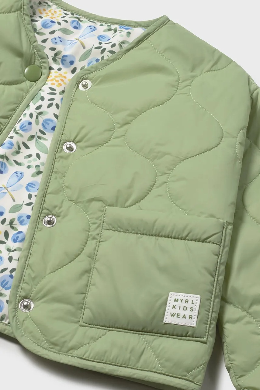 Kojenecká oboustranná bunda z kolekce Mayoral. Zateplený model, vyroben ze vzorovaného materiálu. Model se syntetickou izolací pro větší pohodlí při nižších teplotách.