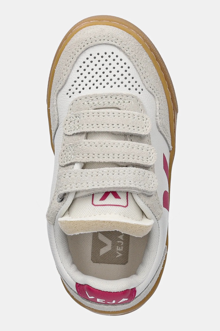 Dětské tenisky z kolekce Veja. Model vyroben z kombinace semiše, přírodní kůže a textilního materiálu. Model se zapínáním na suchý zip umožňuje individuální přizpůsobení noze.