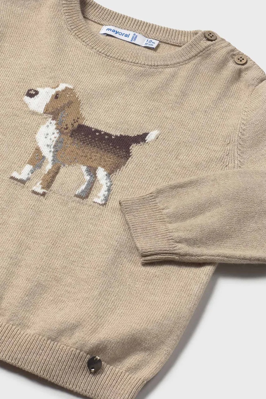 Dětský svetr z kolekce Mayoral. Model vyroben z pružného úpletu. Přídavek polyamidu zvyšuje odolnost výrobku.