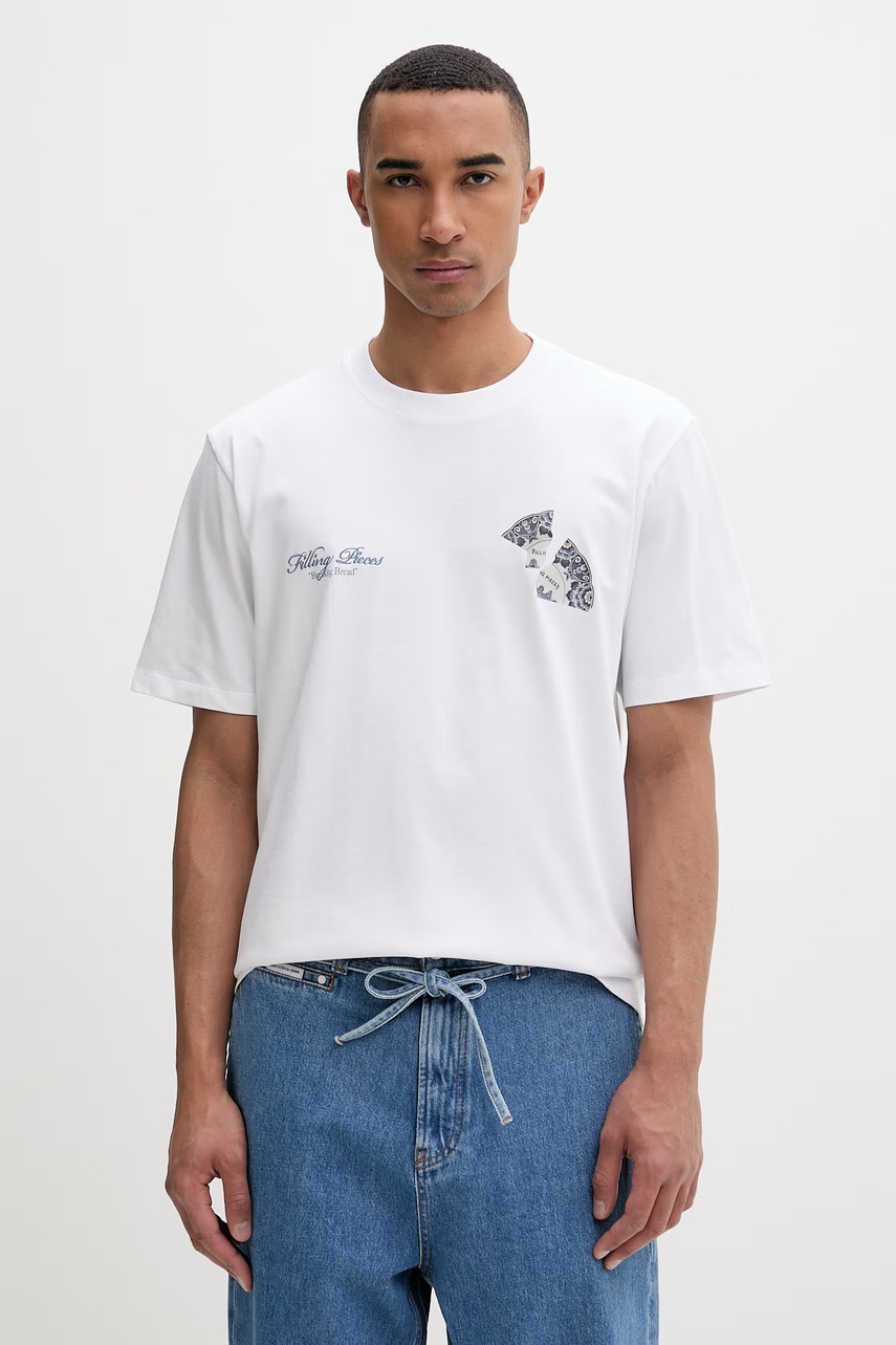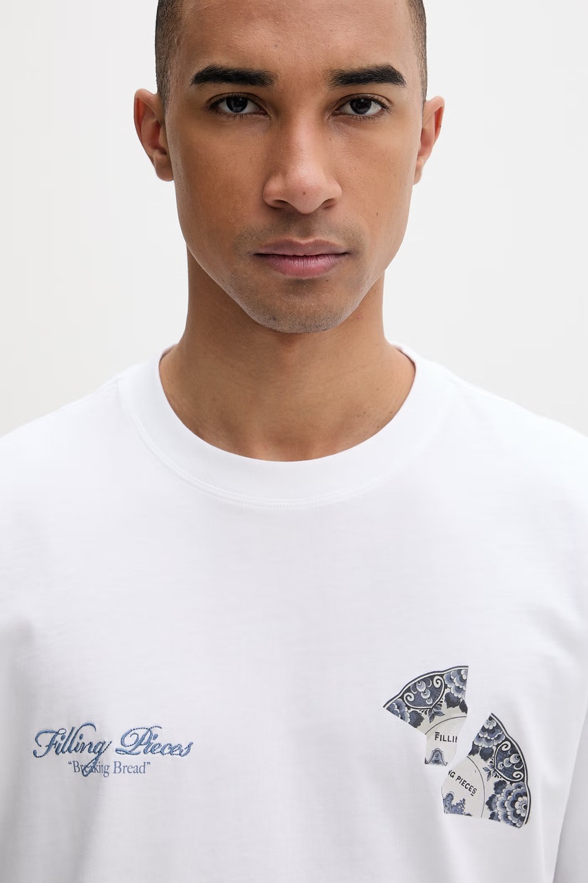 Bílé tričko Filling Pieces je základní pánské tričko, které vyniká volným střihem a kvalitní organickou bavlnou. Tento model s decentním potiskem je pohodlný na nošení a skvěle se hodí k ležérnímu, smart casual i streetwearovému stylu, takže je univerzálním základem mnoha outfitů.