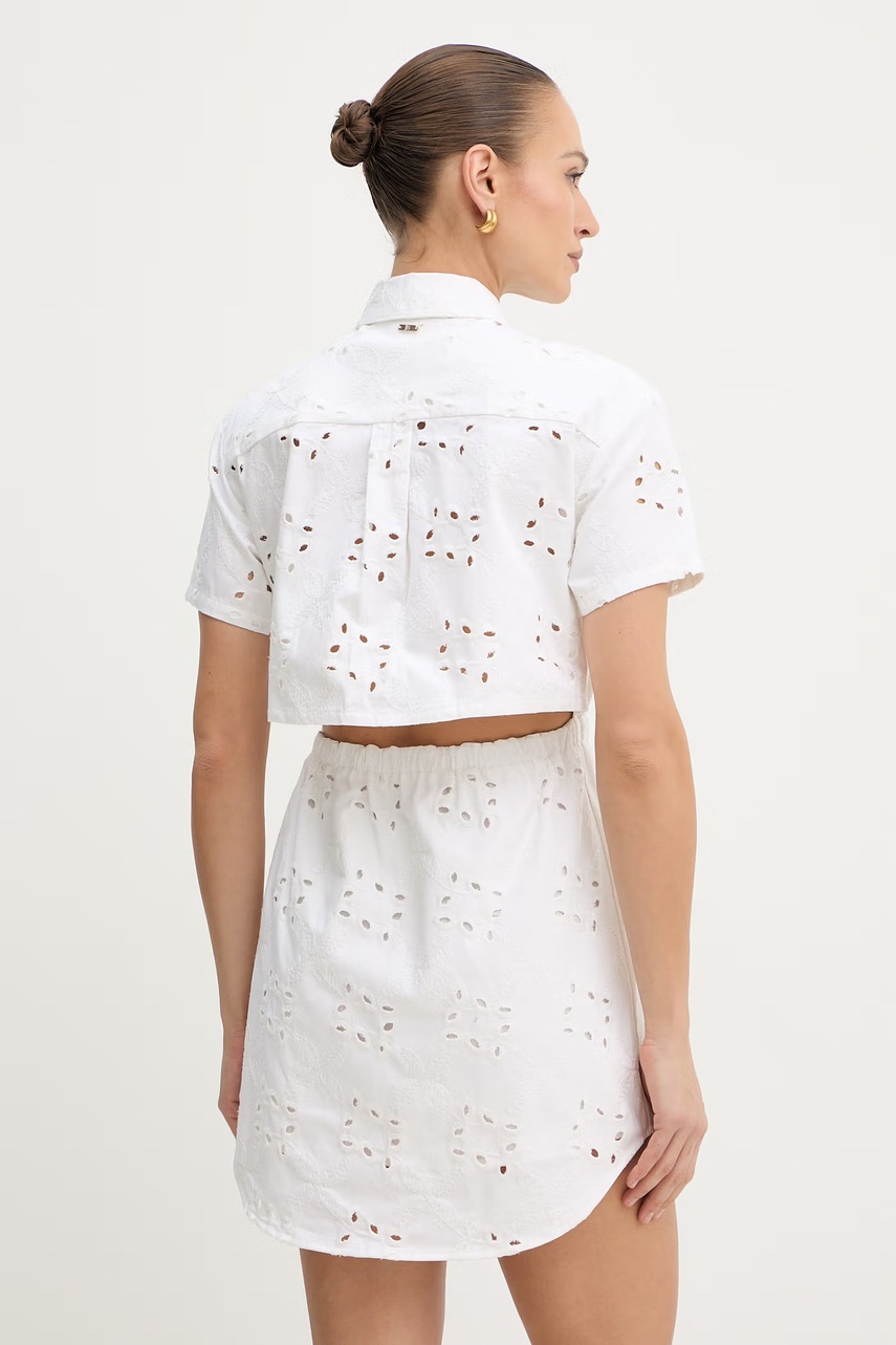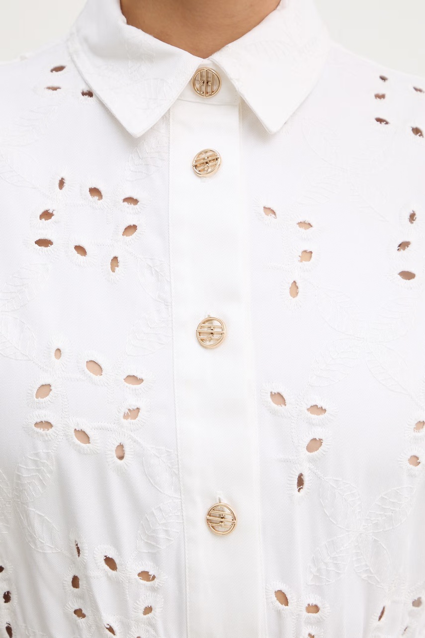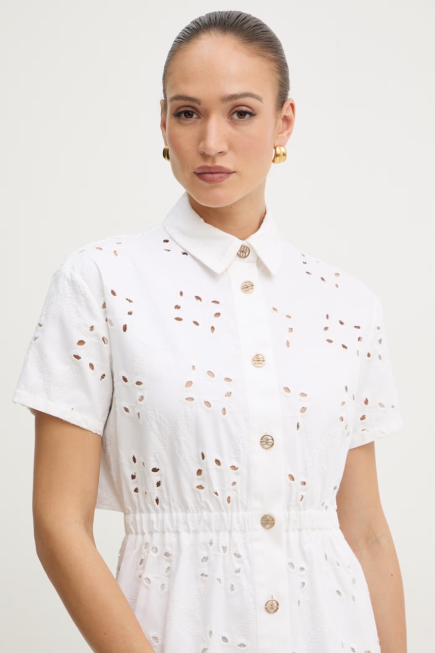 Košilové šaty Fracomina jsou lehkou a stylovou volbou, která spojuje pohodlí přírodní bavlny s ležérním stylem. Tento model, který se vyznačuje vypasovaným střihem a ozdobnými výšivkami, je ideální pro neformální setkání a prázdninové cesty. Jejich prodyšný materiál a krátký střih podporují volnost, což z nich činí ideální volbu pro ženy, které ocení pohodlí a decentní eleganci v teplých dnech.