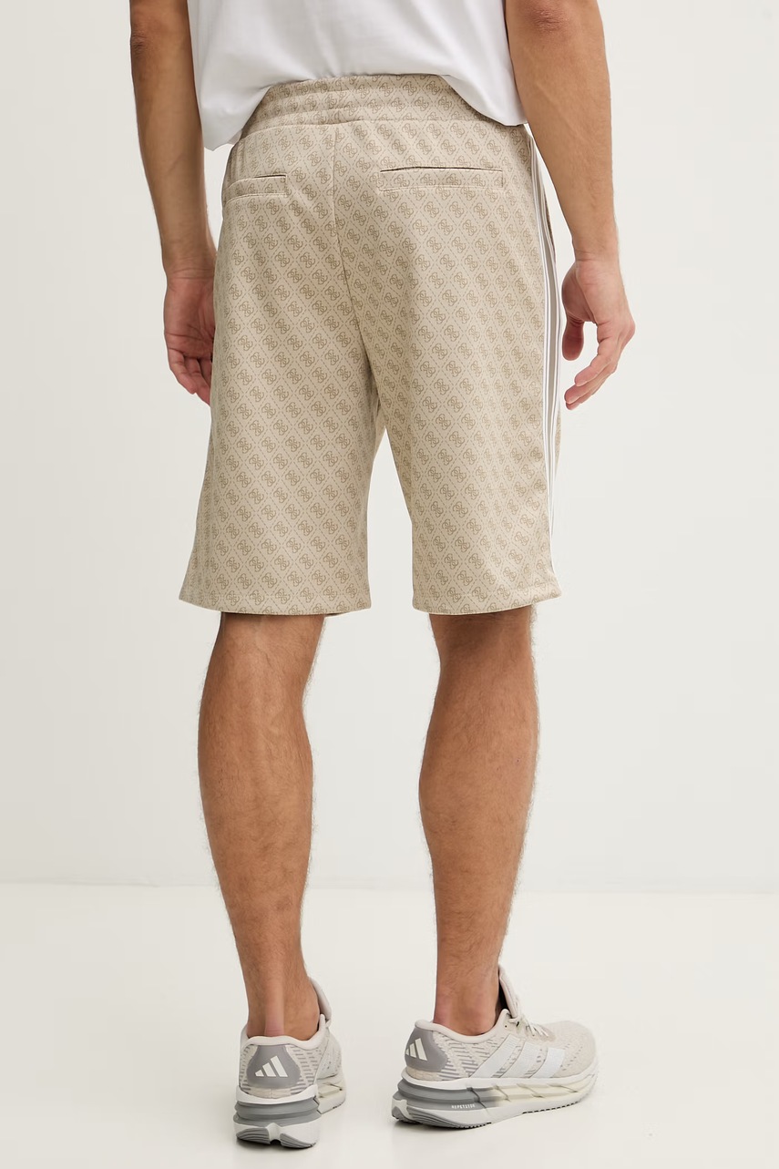 Béžové kraťasy Guess jsou všestrannou volbou pro muže, kteří si cení volnosti a pohodlí v letních outfitech. Tento model vyrobený z úpletu nabízí komfort při nošení a jeho abstraktní vzor a postranní pruhy mu dodávají moderní nádech.
