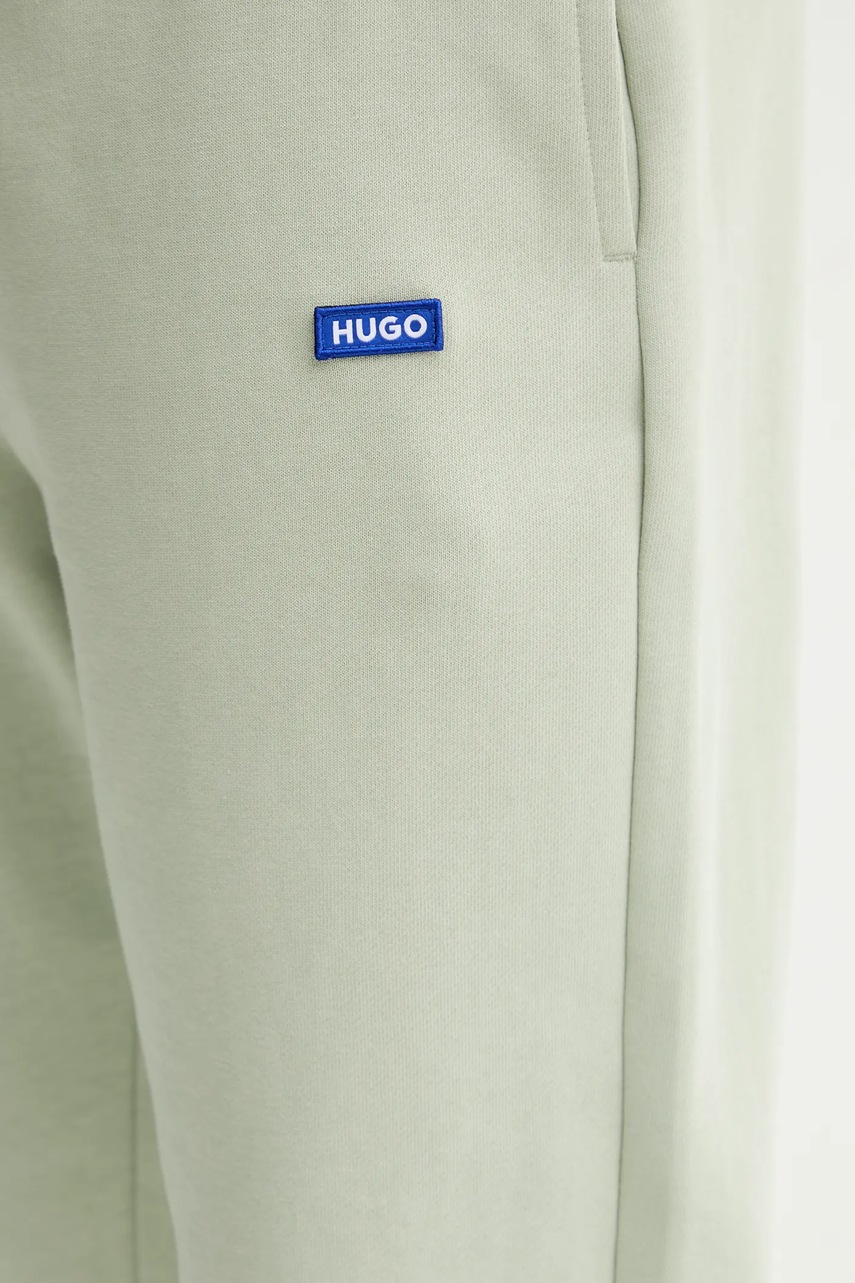 Modré pánské tepláky HUGO Blue jsou prvkem šatníku, který zajišťuje pohodlí a volnost pohybu. Jsou vyrobeny ze 100% bavlny, proto nabízejí příjemný pocit při kontaktu s pokožkou. Díky jejich regular fit střihu a zakončení manžetami jsou ideální volbou pro athleisure, ležérní i streetwearové stylizace a zaručují pohodlí v různých situacích.