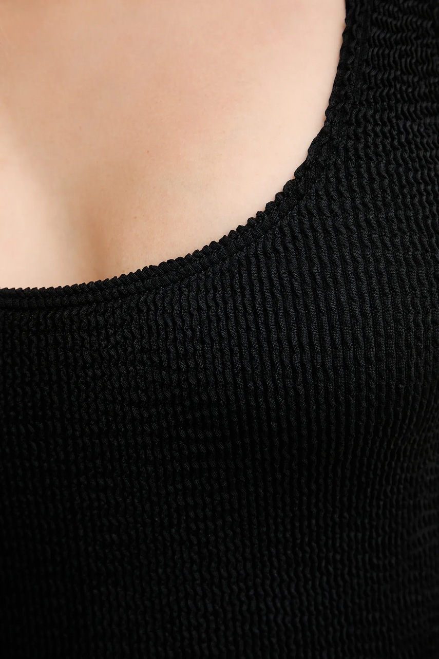 Jednodílné plavky z kolekce Bond Eye. Model vyroben z jednobarevného materiálu. Vysoce kvalitní materiál vyrobený v souladu se zásadami udržitelného rozvoje.