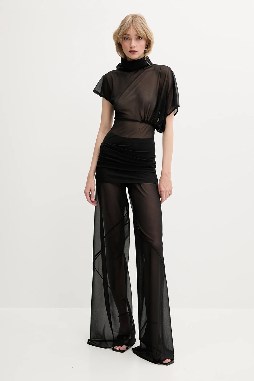 Kalhoty z kolekce Rick Owens Lilies. Model vyroben z jednobarevného materiálu. Polyester poskytuje větší odolnost proti mačkání.