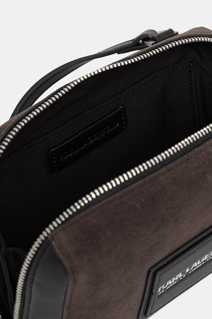 -12%Crossbody Taška Karl Lagerfeld je kompaktní doplněk, který umožňuje pohodlné uložení nezbytných drobností a usnadňuje k nim přístup. Tento model vyrobený z imitace semiše v elegantním hnědém odstínu skvěle doplní ležérní a smart casual outfity…