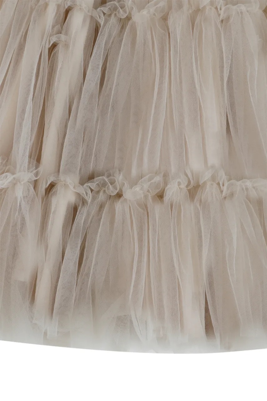 Kojenecké šaty z kolekce Donsje. Model vyroben z kombinace dvou různých materiálů. Nádherný model pro zvláštní příležitosti.