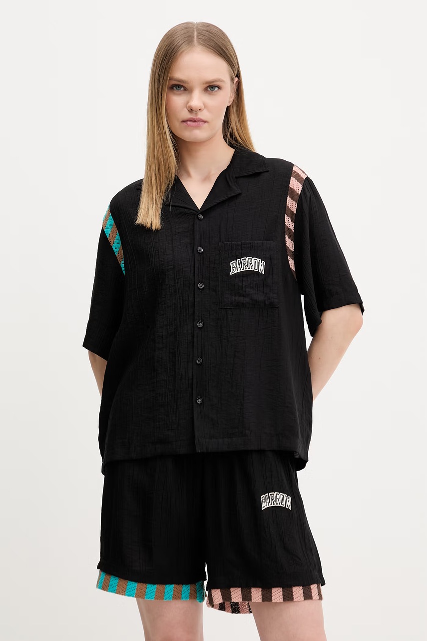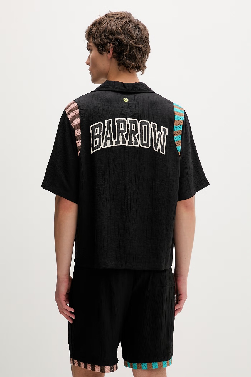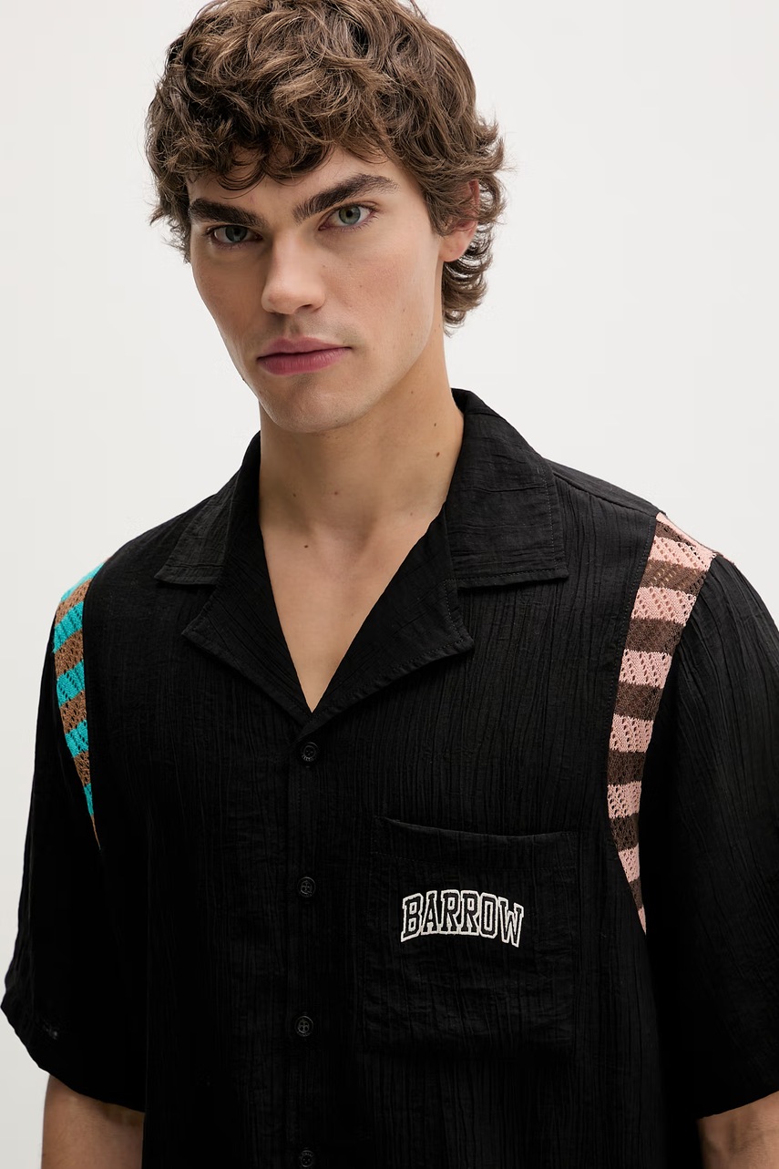 Košile z kolekce Barrow. Model vyroben z tenké, nepružné tkaniny. K modelu je připojen přívěsek na klíče.