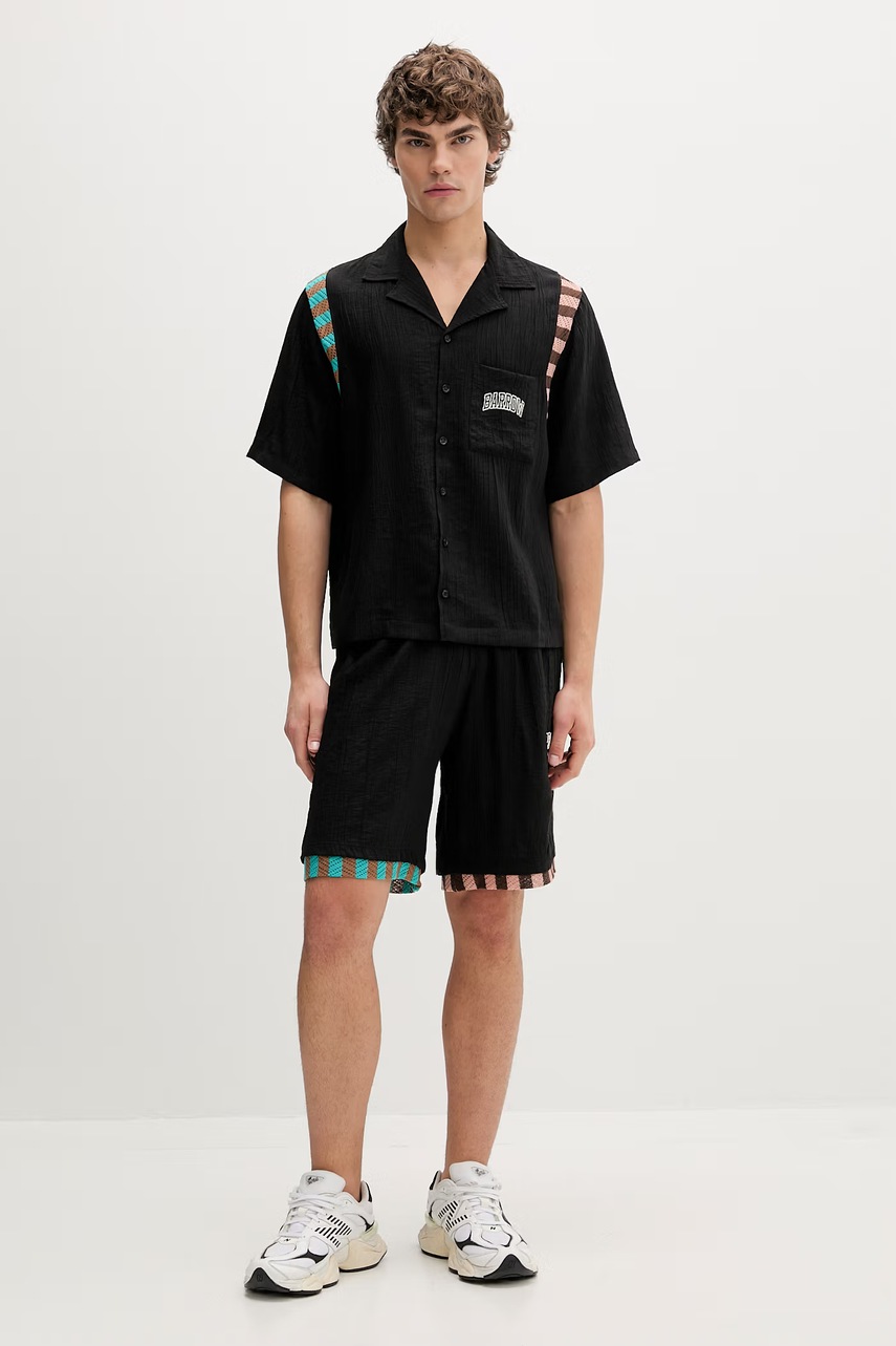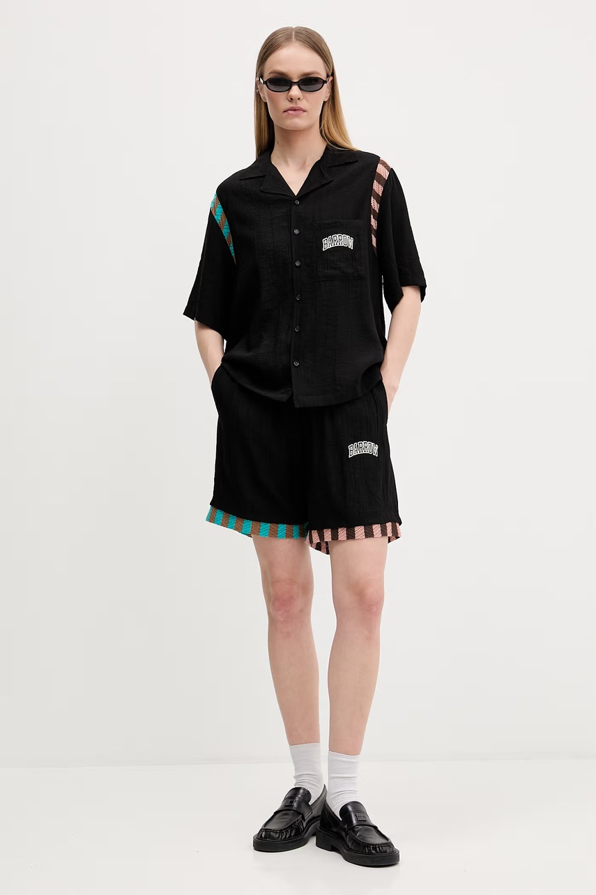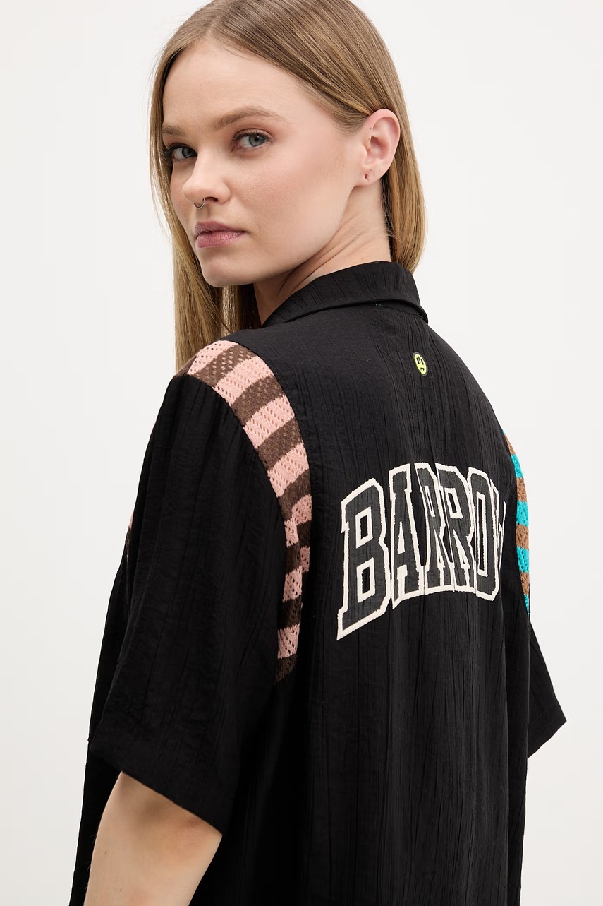 Košile z kolekce Barrow. Model vyroben z tenké, nepružné tkaniny. K modelu je připojen přívěsek na klíče.