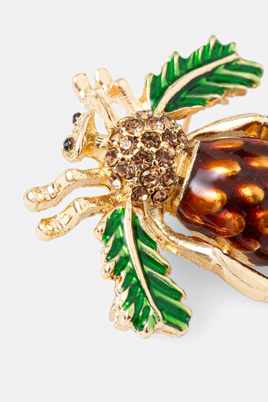 Brož Medicine je ozdobný doplněk k oděvu, který subtilně oživí každý outfit. Její unikátní design s motivem hmyzu, v kombinaci s lesklou povrchovou úpravou, umožňuje vyjádřit individuální styl. Tento model je skvělou volbou pro ty, kteří hledají originální akcenty, které oživí jak formální, tak i ležérní outfity.