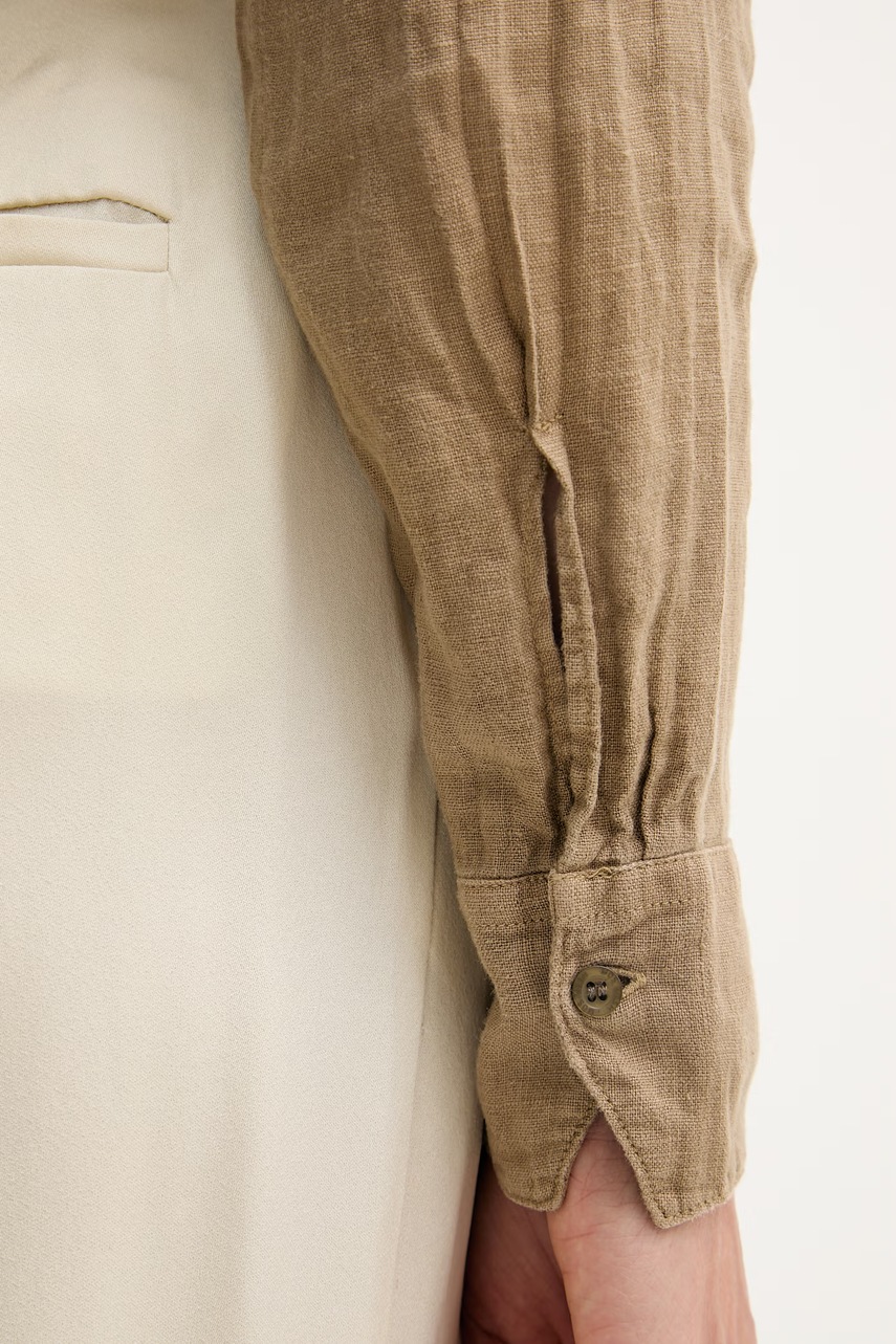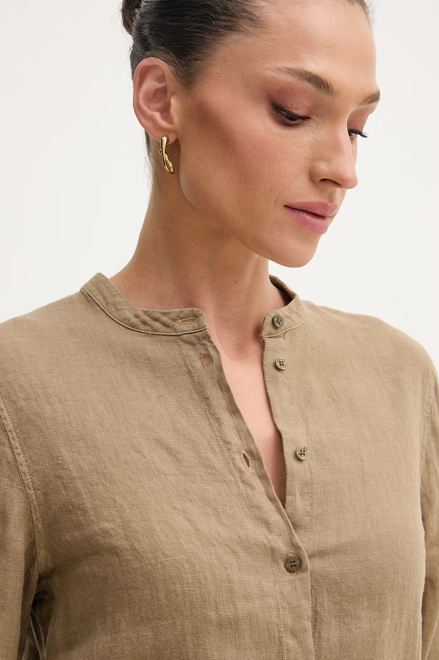 Košile Mos Mosh je dámský model, který spojuje přirozený komfort s ležérním stylem. Je vyrobena ze 100% lnu, což podporuje prodyšnost a lehkost, a proto je vhodná pro letní, neformální a plážové stylizace.