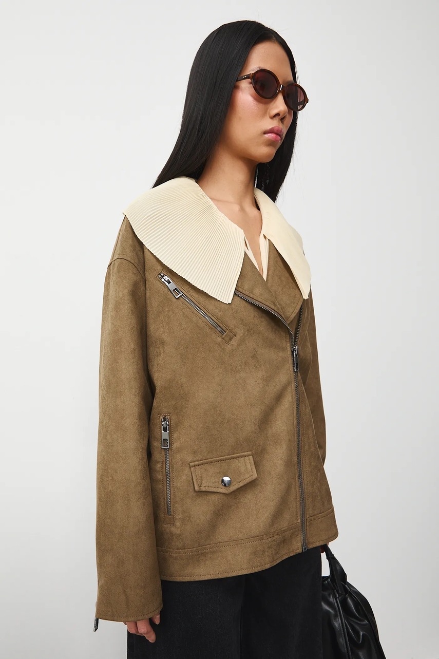 Motorkářská bunda z kolekce Medicine. Nezateplený model, vyroben ze vzorované tkaniny.
