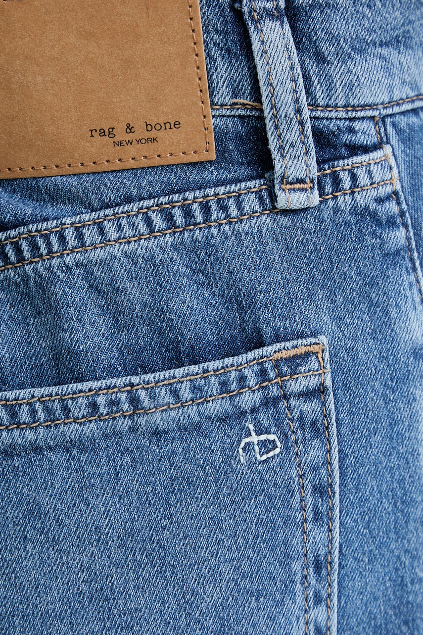 Džíny wide leg rag & bone jsou elastický model s vysokým pasem, který zajišťuje volnost pohybu a zvýrazňuje siluetu. Vyrobené ze směsi bavlny a lyocellu, nabízejí celodenní pohodlí při nošení. Jejich ležérní styl a moderní efekt seprání z nich činí skvělý základ pro mnoho ležérních outfitů.