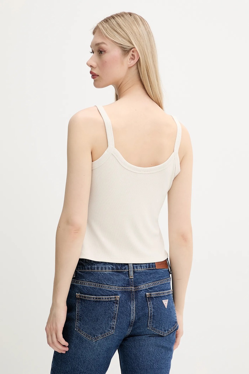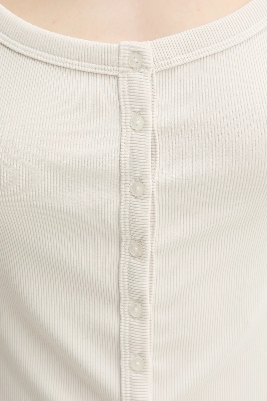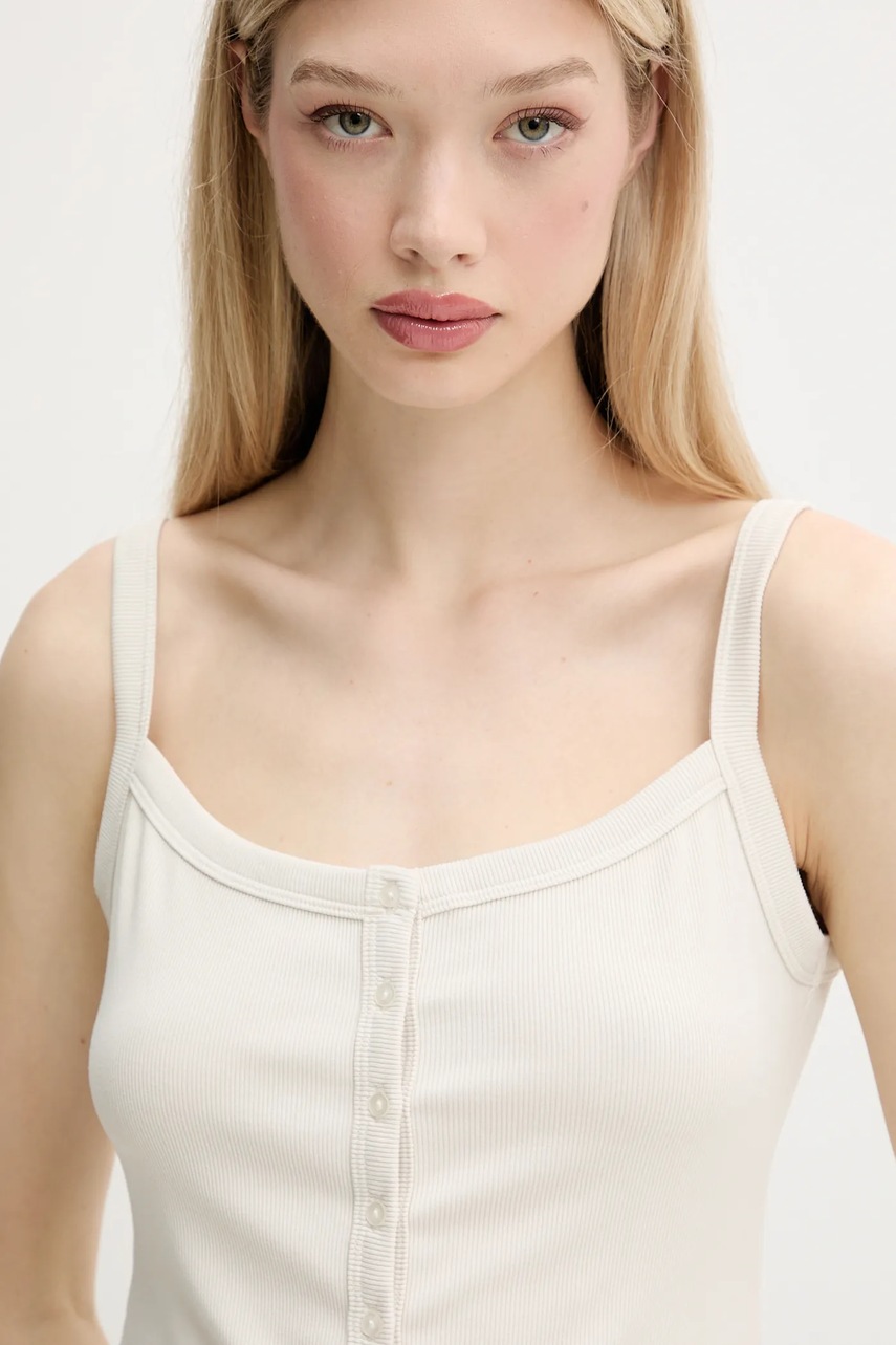 Top z kolekce Abercrombie & Fitch. Model vyroben ze žebrovaného pružného úpletu. Díky obsahu polyesteru je materiál odolnější proti mačkání.