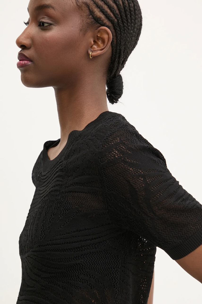 Tričko z kolekce Desigual. Model vyroben z ažurového úpletu. Model z extrémně příjemného materiálu s vysokým obsahem viskózy.
