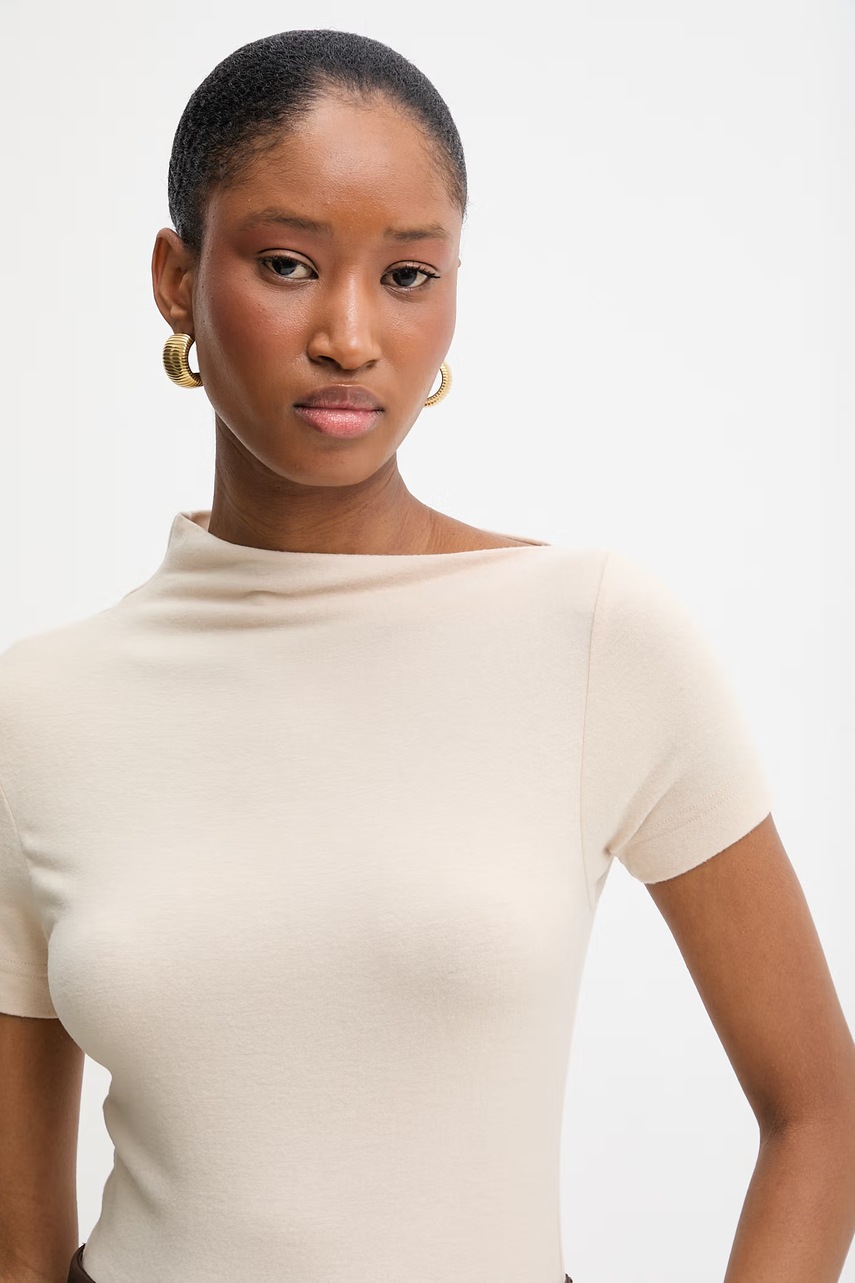 Tričko z kolekce Guess. Model vyroben z tenké, velmi elastické tkaniny. Model z extrémně příjemného materiálu s vysokým obsahem viskózy.