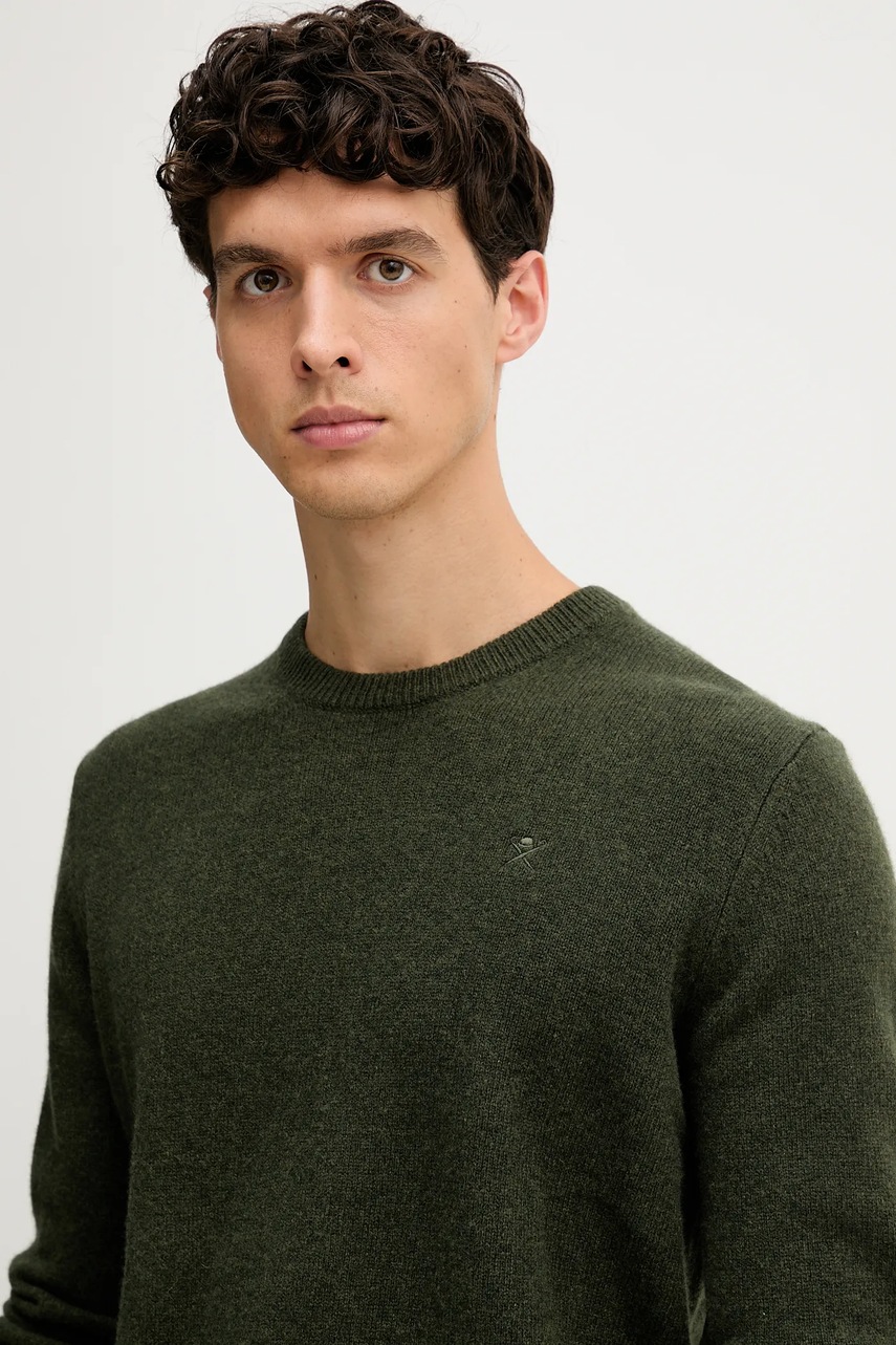 Svetr z kolekce Hackett London. Model vyroben z hladkého a pružného úpletu. Vlna díky svým vysokým termoregulačním vlastnostem pomáhá udržet teplo, když je zima, a chladit, když je teplo.