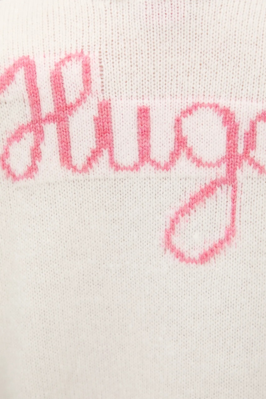 -4%Svetr z kolekce HUGO. Model vyroben z pleteniny střední tloušťky. Vlna díky svým vysokým termoregulačním vlastnostem pomáhá udržet teplo, když je zima, a chladit, když je teplo.