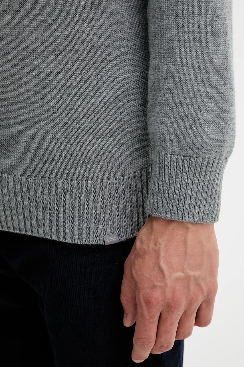 Svetr z kolekce Paul&Shark. Model vyroben z hladkého a pružného úpletu. Panenská vlna je lehčí než klasická vlna. Vyznačuje se mimořádnou měkkostí, jemností a odolností.
