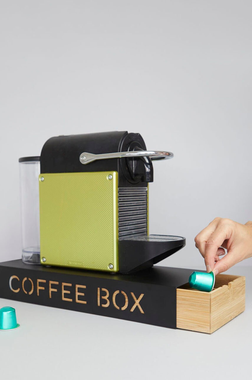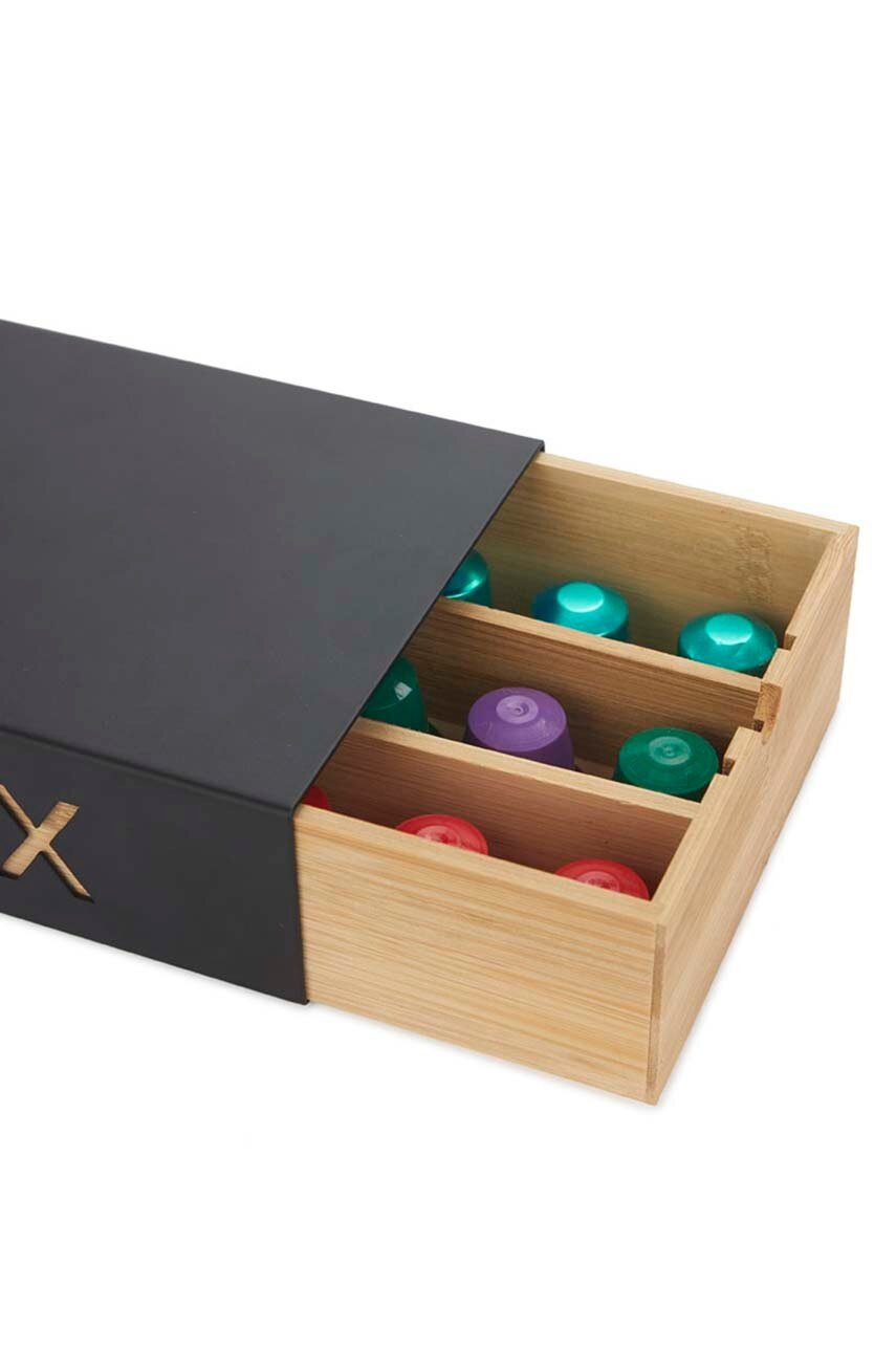 Zásobník na kávové kapsle z kolekce Balvi. Model vyroben z bambusového dřeva a kovu.